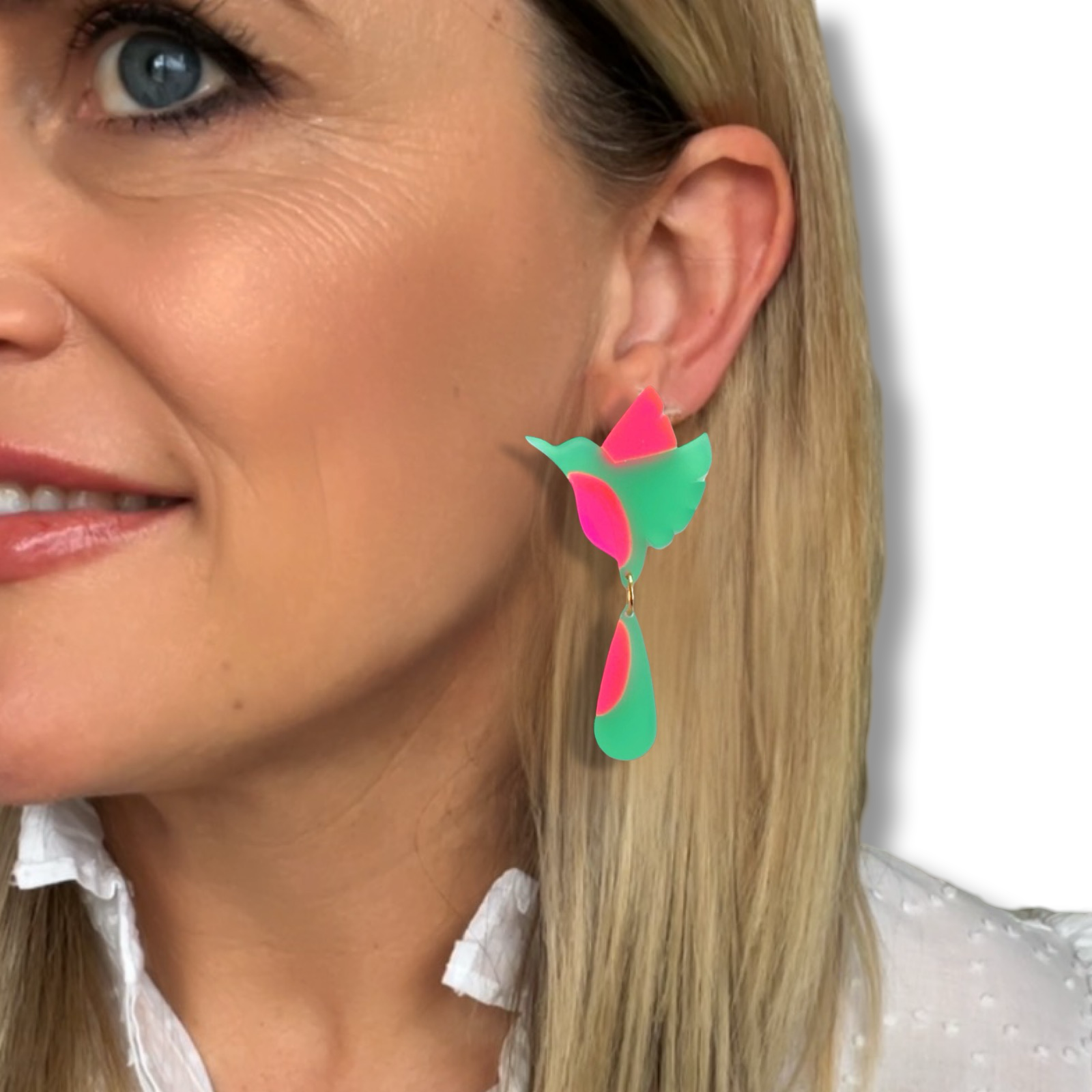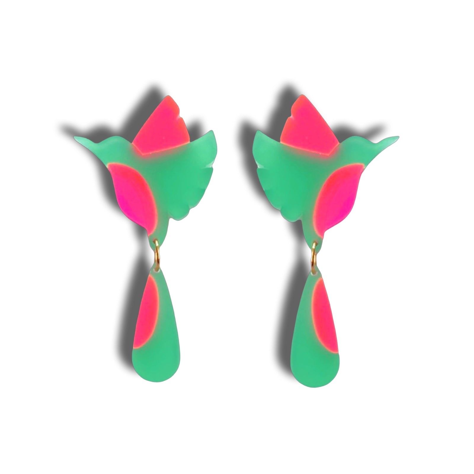 The perfect mix of frosted green and hot pink gives these earrings an edge, making you feel vibrant and fearless. Let your personality shine bright, just like the Kingfisher’s striking colors.