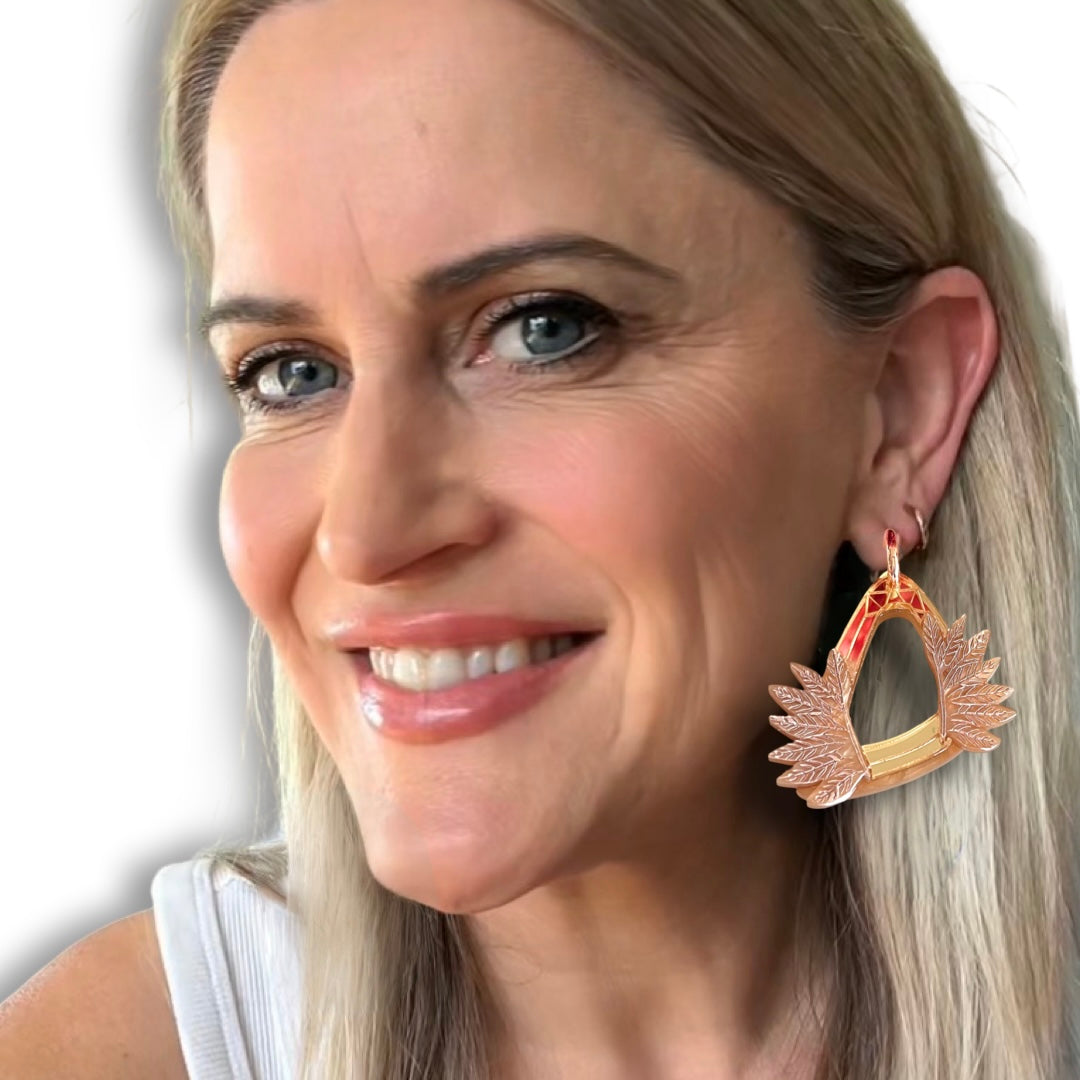 Structured gold triangles meet delicate fern details. A nice balance of bold and natural.
