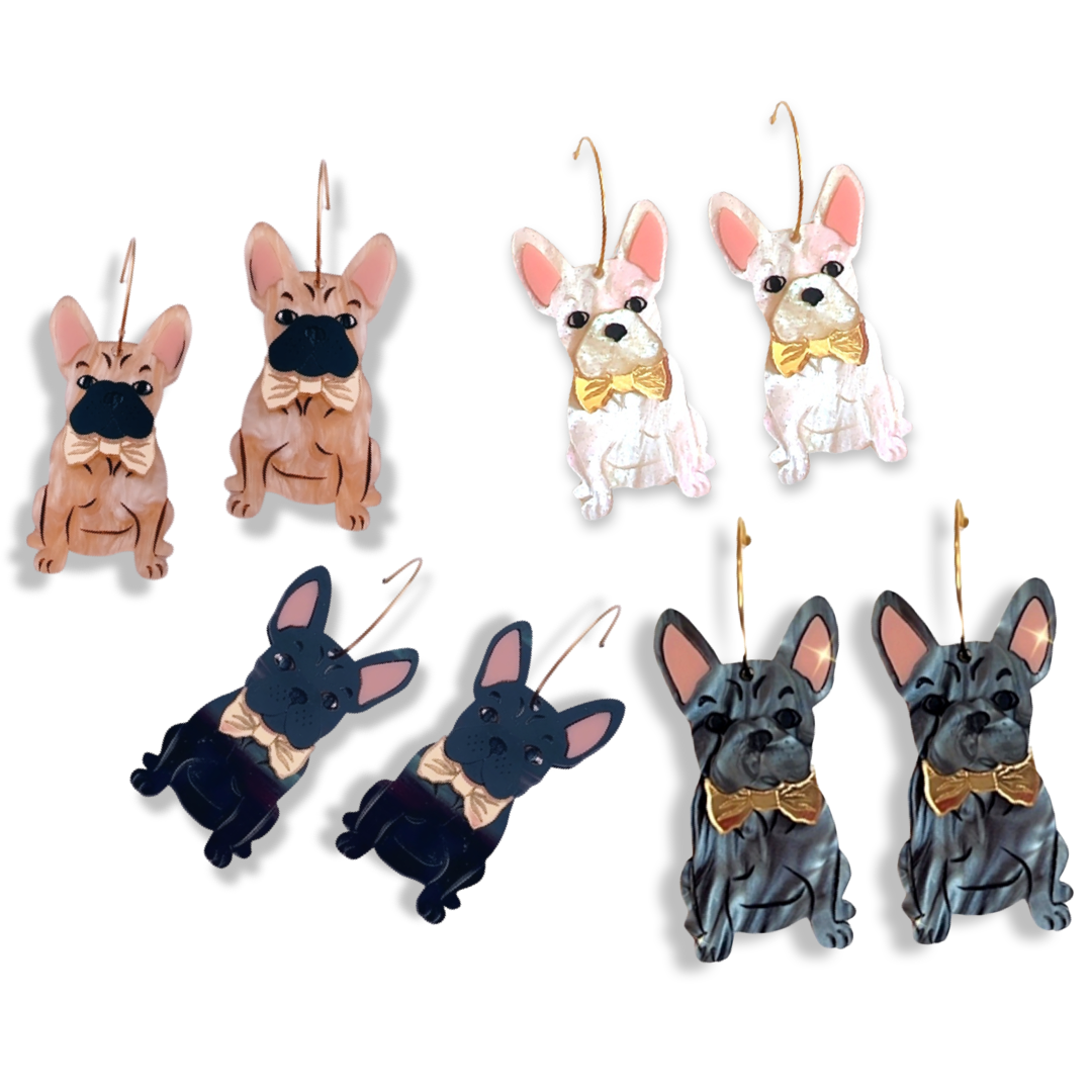 Oo La La Frenchies are beloved to the stars. And you will feel like a star with our fabulous dangles featuring this loveable canine. Hand crafted from high quality acrylic, these earrings are a must-have accessory for any dog lover. What a delight, you'll be able to take your furry friend with you wherever you go.