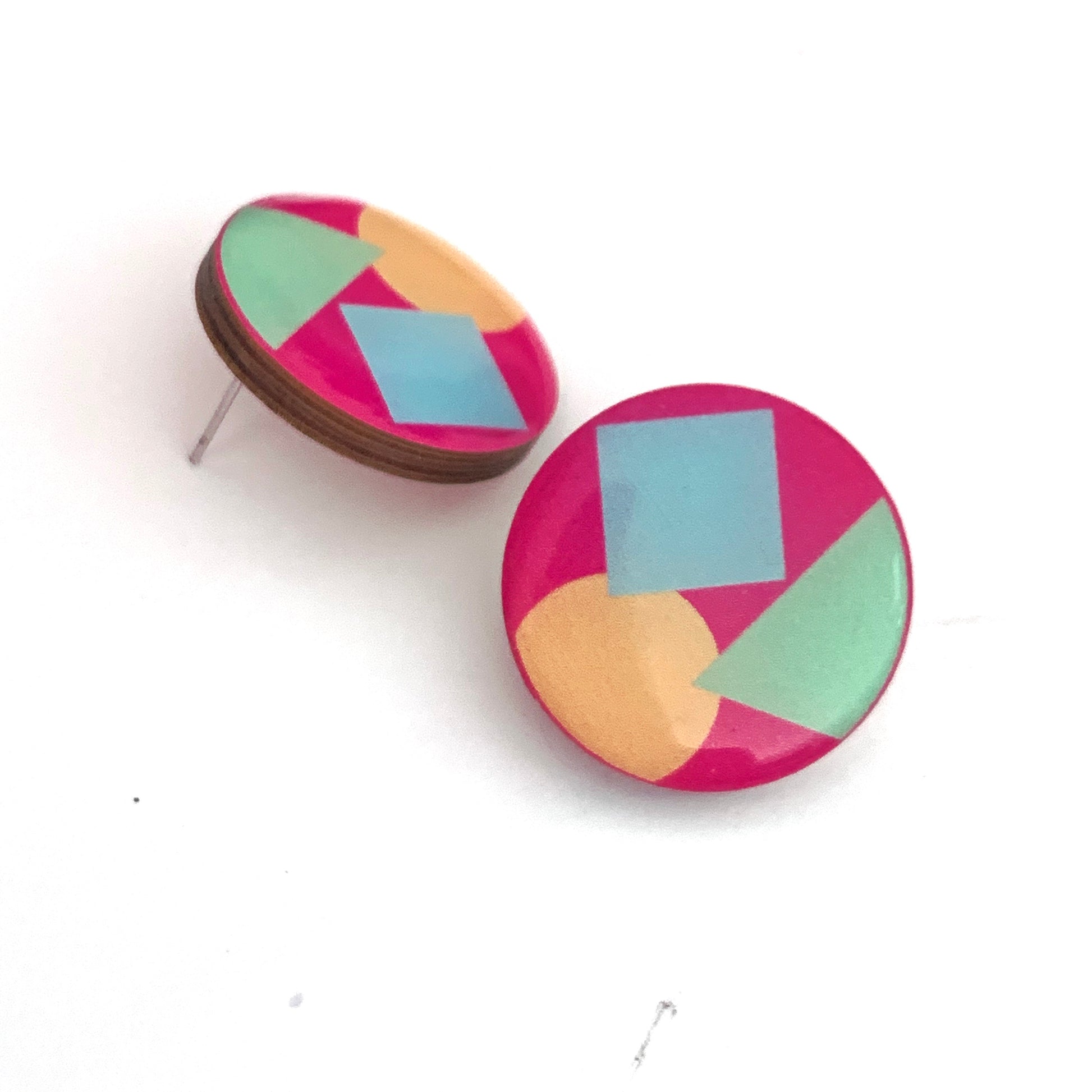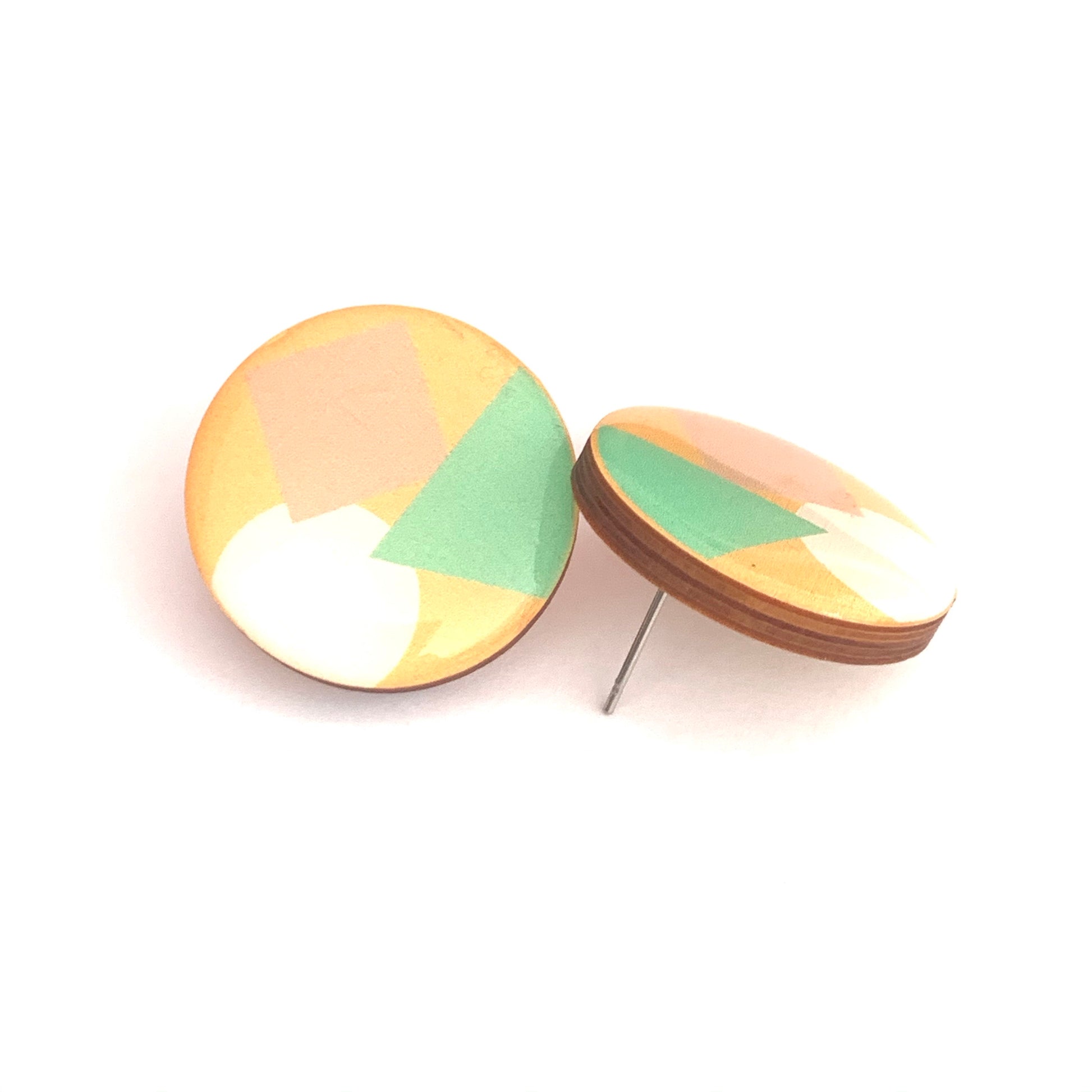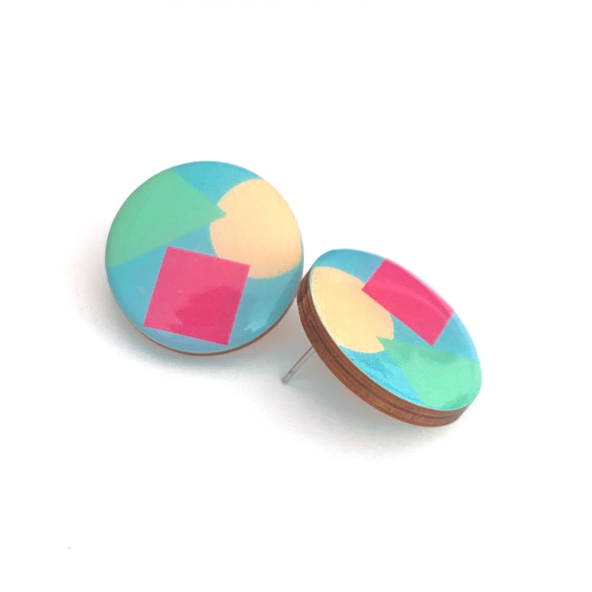 Quirky studs that are hand drawn with love, made on wood and with two coats of resin to ensure longevity.