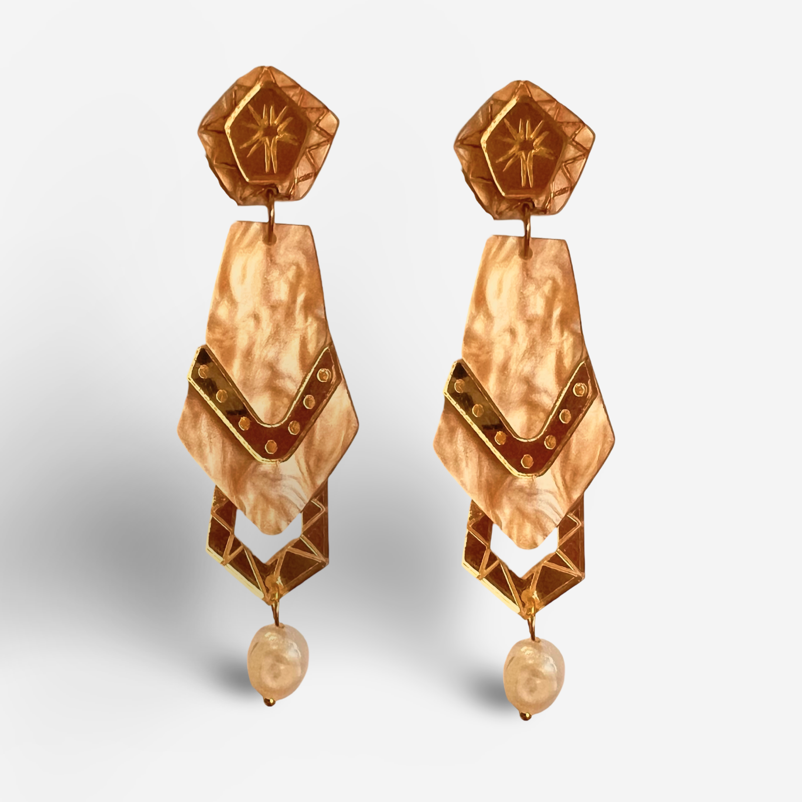 Inspired by the elegance of Art Deco and a poetic tribute to its timeless style, these earrings feature textures and clean lines. A sophisticated blend of modern artistry and vintage charm, they are perfect for those who appreciate statement pieces with a touch of classic glamour.