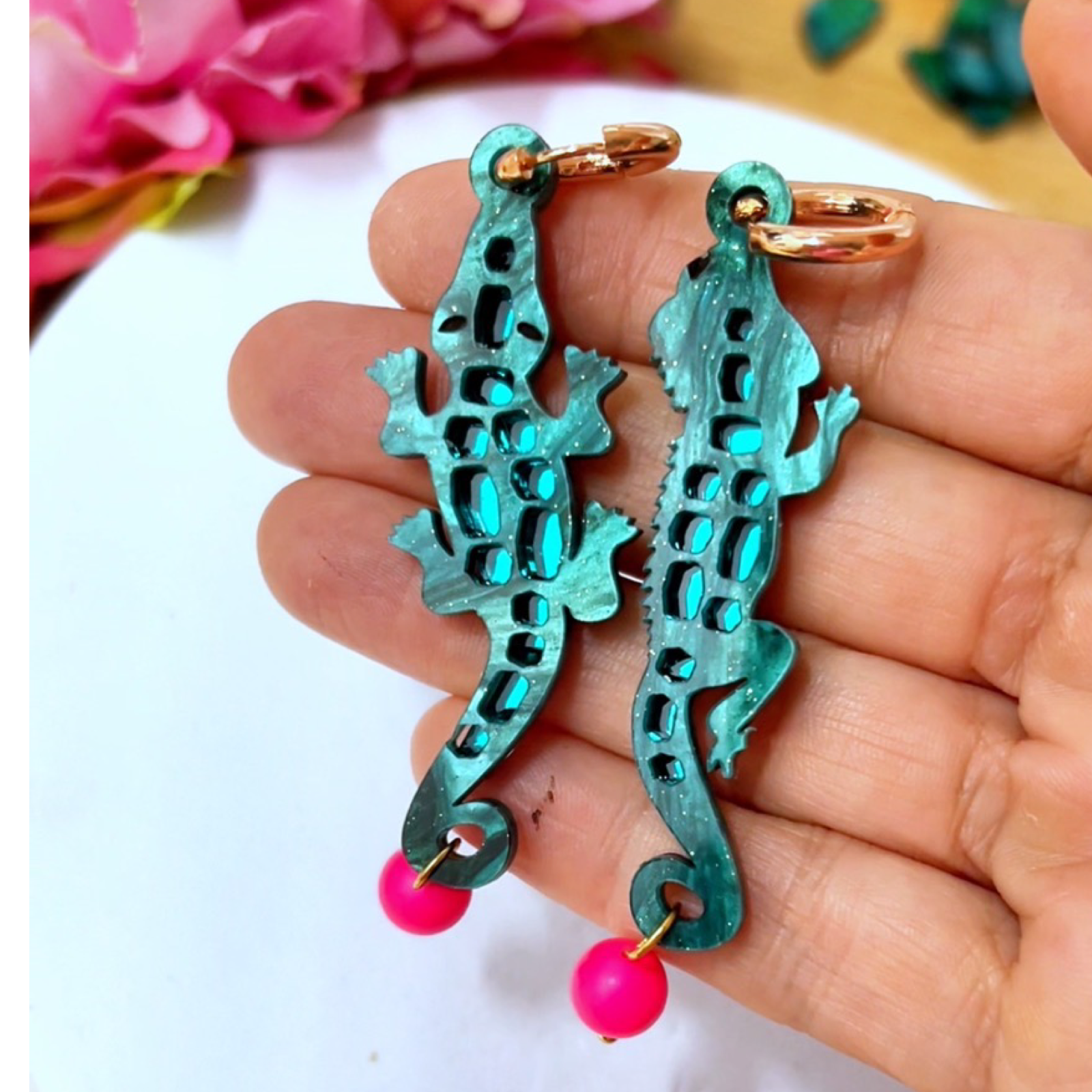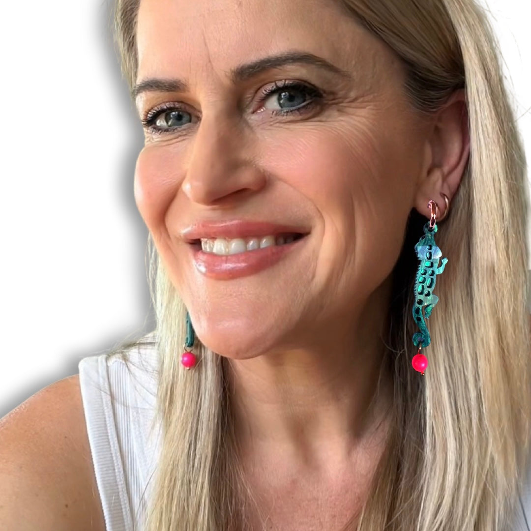 A little attitude in the form of a lizard and a pop of pink. Fun, fierce, and hard to miss.