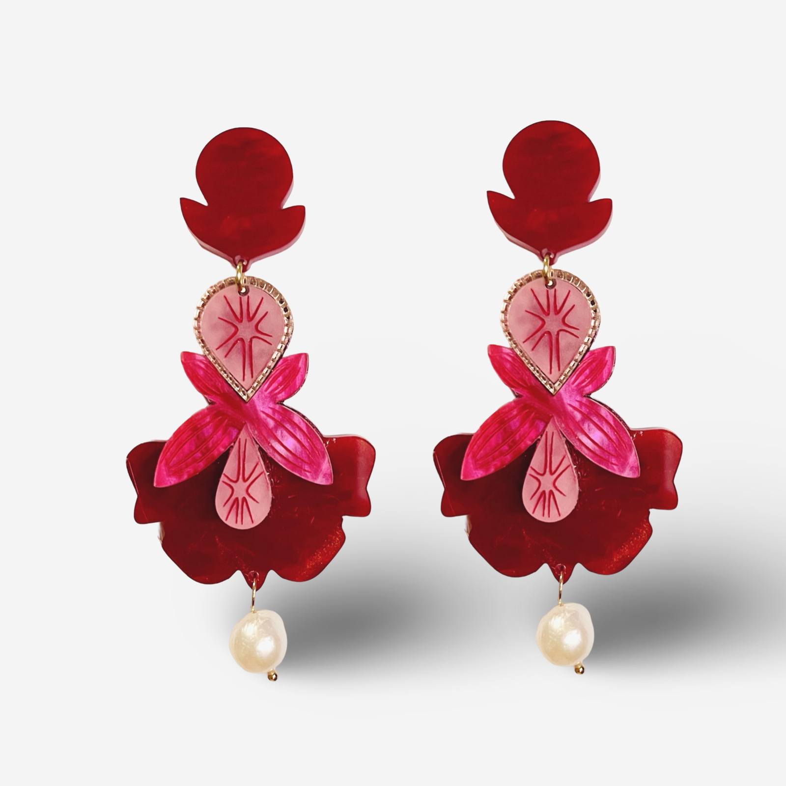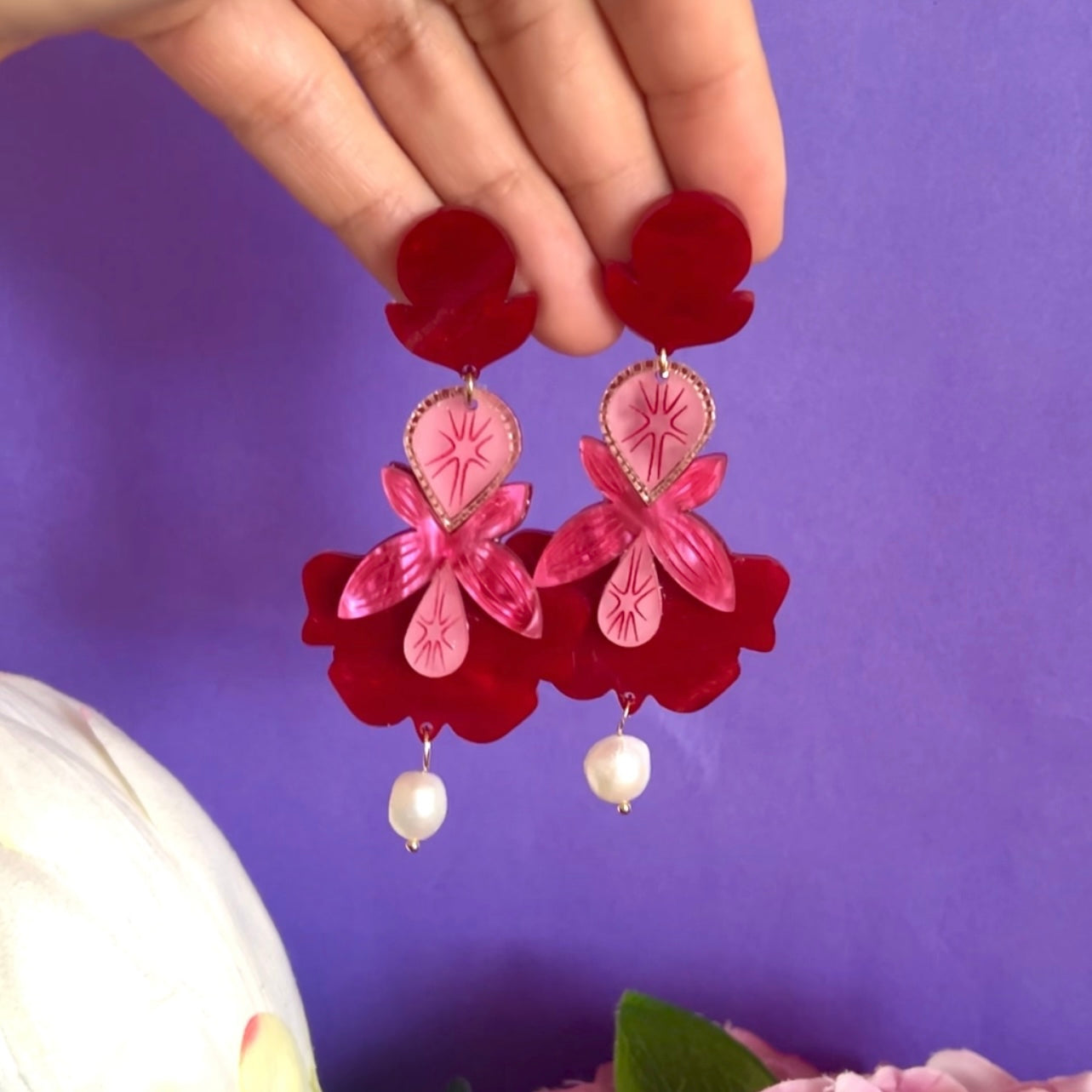 Inspired by a heartfelt poem by Rainer Marie Rilke, these striking earrings celebrate the timeless beauty of roses. Crafted in one of the most stunning colour combinations—pink and red—they are a true statement piece, perfect for elevating any collection with their bold elegance.